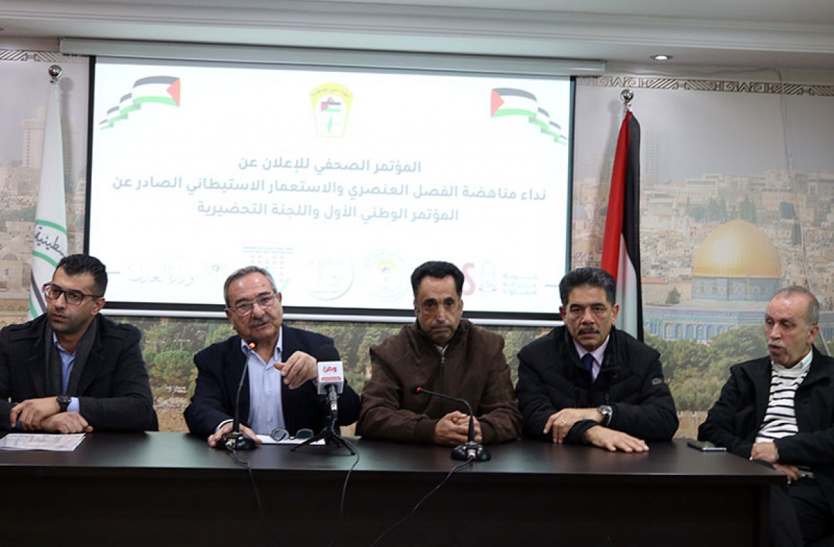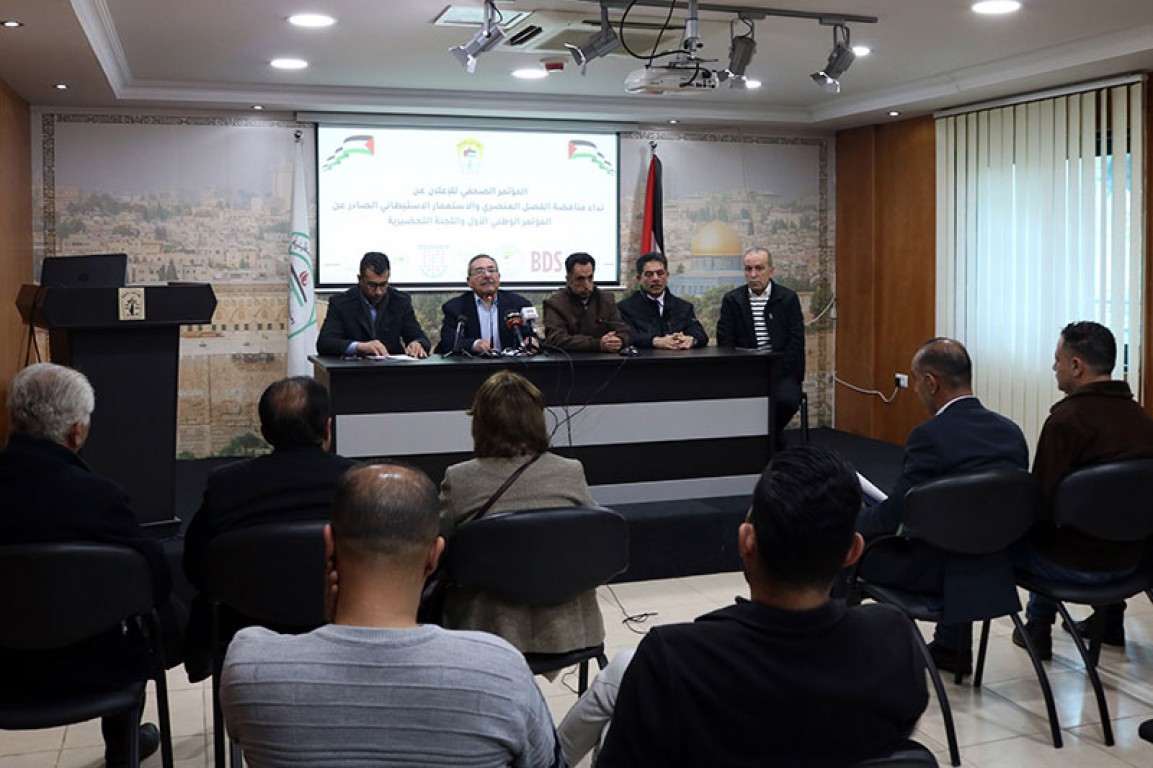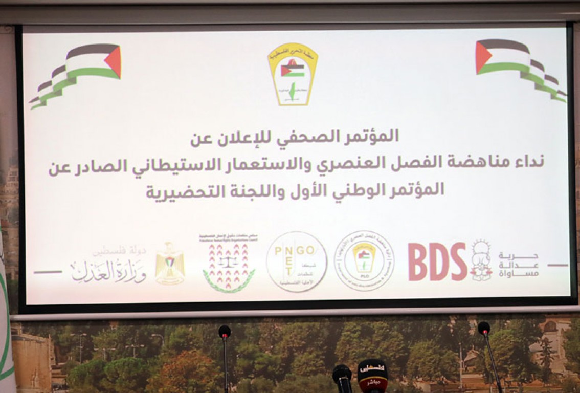 المؤتمر الصحفي الذي عقد للإعلان عن النداء الصادر عن المؤتمر الوطني الأول لمناهضة الفصل العنصري (الأبارتهايد) / رام الله 28-12-2022