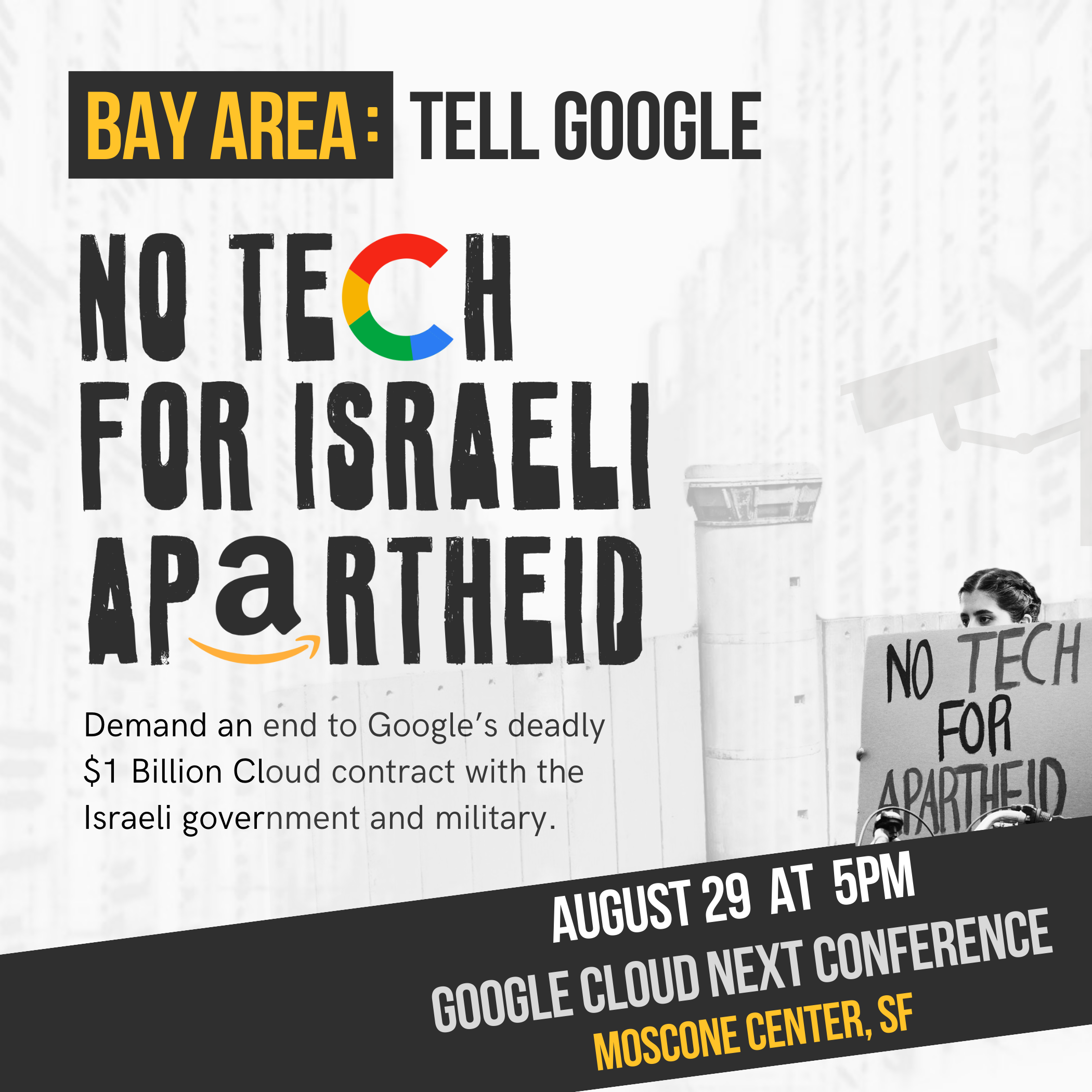 دعا ائتلاف المؤسسات المناصرة للحق الفلسطيني على الساحة الأميركية، إلى تنظيم تظاهرة مناهضة "للأبارتهايد" الإسرائيلي أمام مؤتمر تكنولوجيا السحاب المنوي عقده في ولاية كاليفورنيا نهاية شهر آب الجاري.